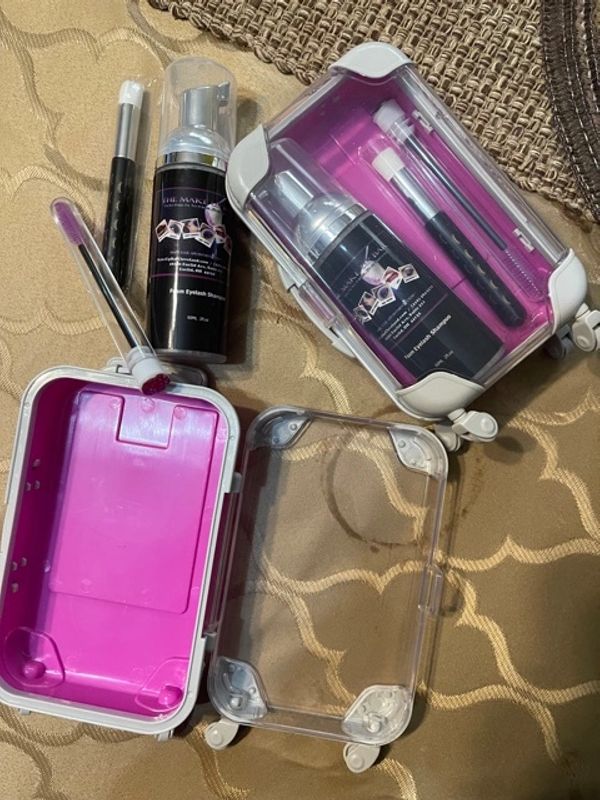 For healthy lash aftercare. Vegan, tear-free and oil free. Comes with a cute suitcase carrier.